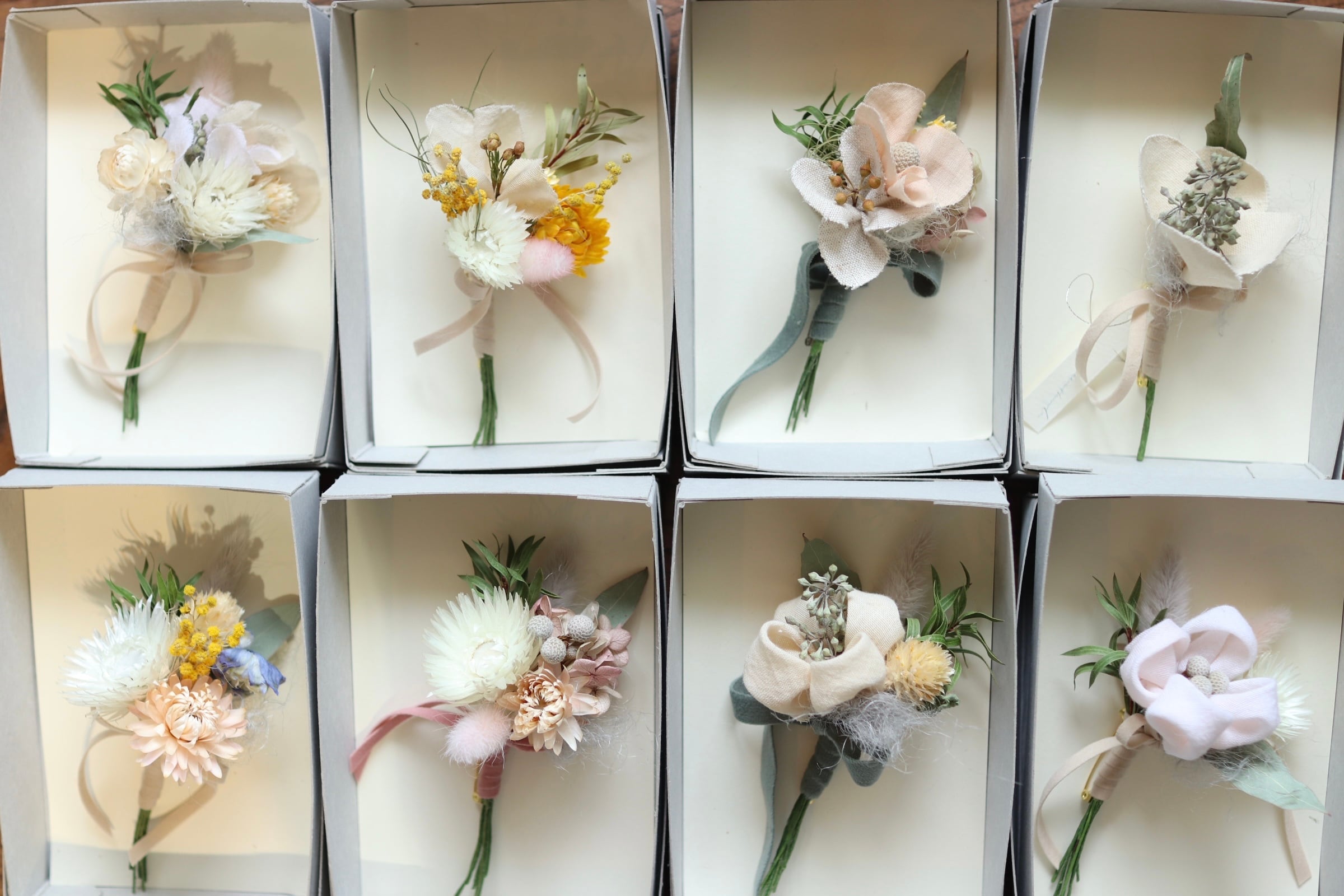 コサージュとして使用した後は、一輪挿しやトレイに置いて飾ってお楽しみいただけます。