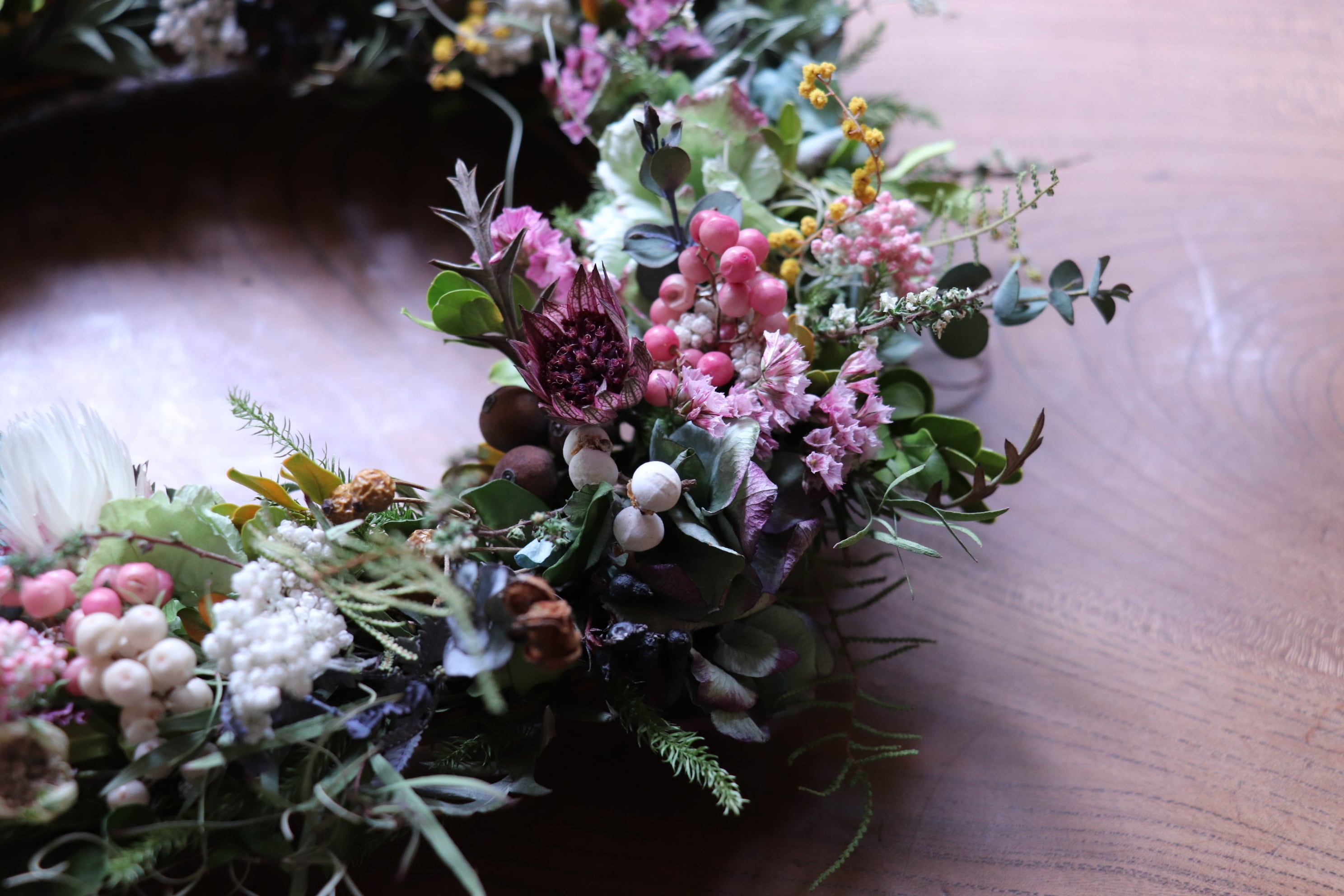 セミオーダーでお作りする季節の草木花リース