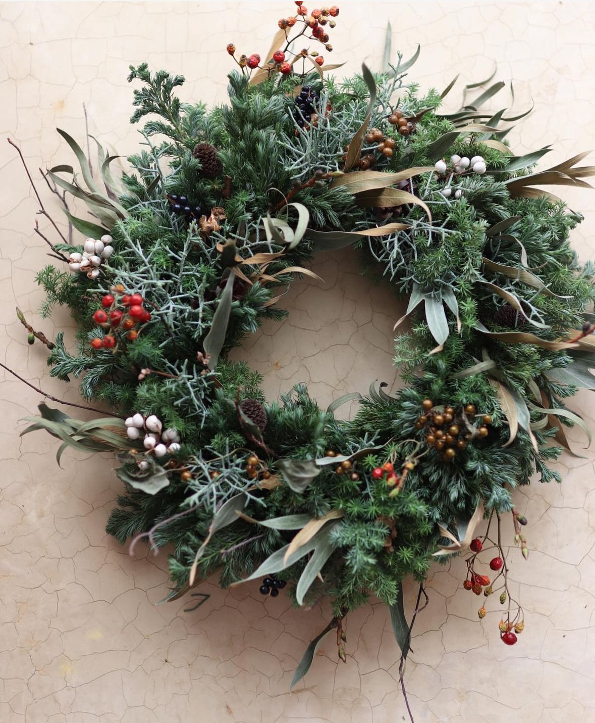 クリスマスリースとしてはもちろん冬の間やその先も眺めていただけるデザインを心がけています。